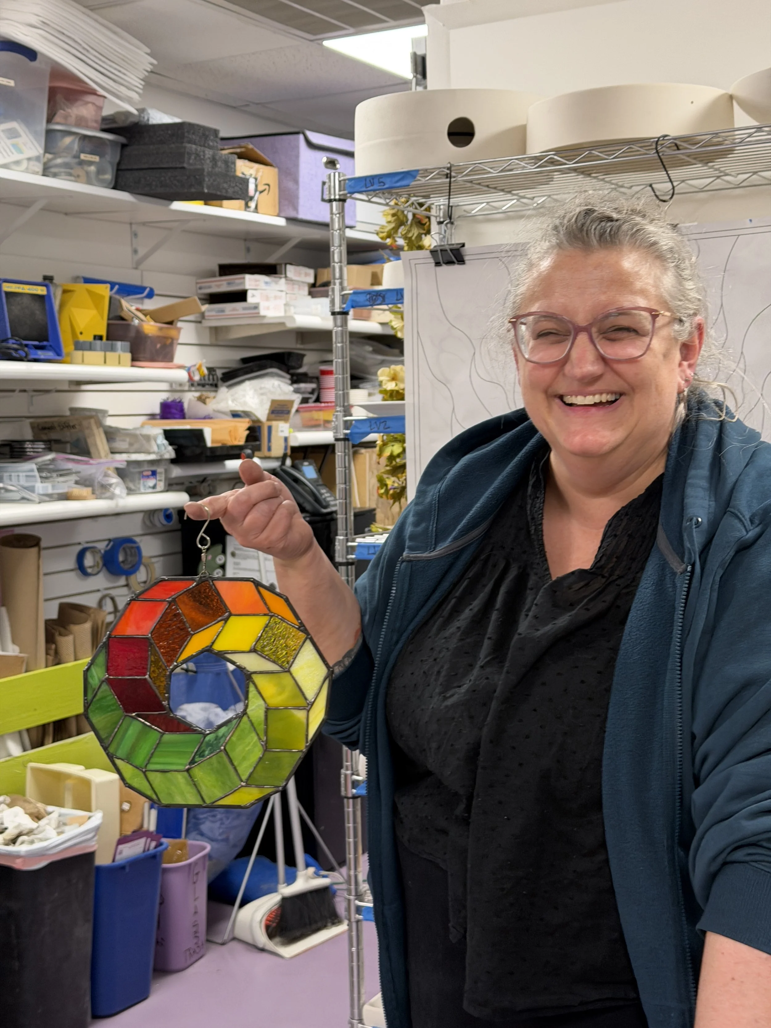 Adult Glass isn't a typical art class. It's a personalized mentorship designed around your creative goals. In a small group capped at just five students, you'll receive extensive one-on-one attention from our expert instructors. Whether you're drawn to the timeless tradition of stained glass or the modern possibilities of kiln-formed glass, we'll help you build a strong foundation of skills and guide you as you bring your unique vision to life. With the personalized style of this class it is the perfect class for first time students through advanced intermediates!