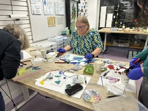 You will get to dive into your choice of fused/slumped glass, stained glass, or small scale cast glass.
